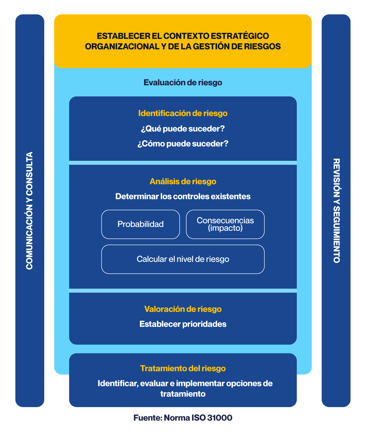 a. Identificación: Se reconocen y describen los eventos o situaciones que podrían afectar el logro de objetivos. Su propósito es generar un detalle de riesgos, para lo cual se debe considerar: procesos, actividades, sistemas, tecnología, entorno legal o regulatorio, experiencias pasadas, auditorías, incidentes y criterios de expertos.