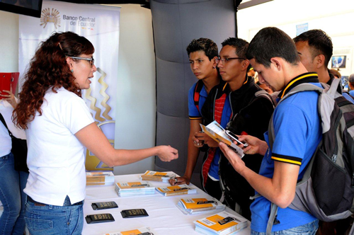 Alrededor de 500 estudiantes y profesores de la Universidad de Investigación de Tecnología Experimental Yachay, pudieron conocer más sobre el uso del dinero electrónico a través de un ambiente controlado que realizó el Banco Central del Ecuador (BCE) como parte de la Primera Feria de Ciencia, Emprendimiento e Innovación (Innopolis), que se desarrolló del 15 al 18 de enero de 2015.