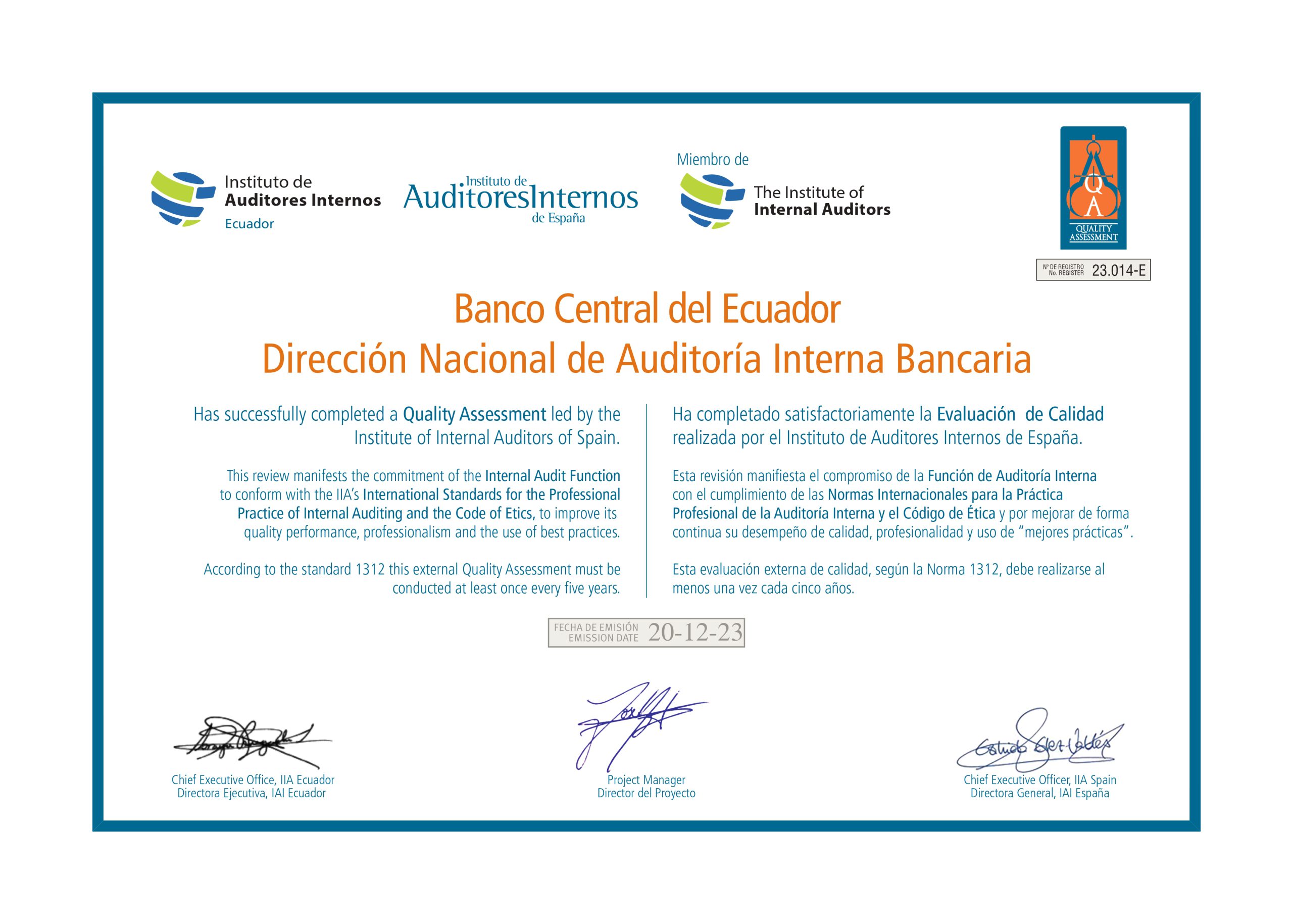 La actuación de la Dirección de Auditoría Bancaria está orientada a proporcionar servicios independientes y objetivos de aseguramiento y asesoría interna; así como, análisis prospectivos y previsiones basados en riesgos con el fin de fortalecer las capacidades y optimizar las operaciones del Banco Central del Ecuador a nivel nacional.