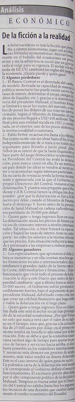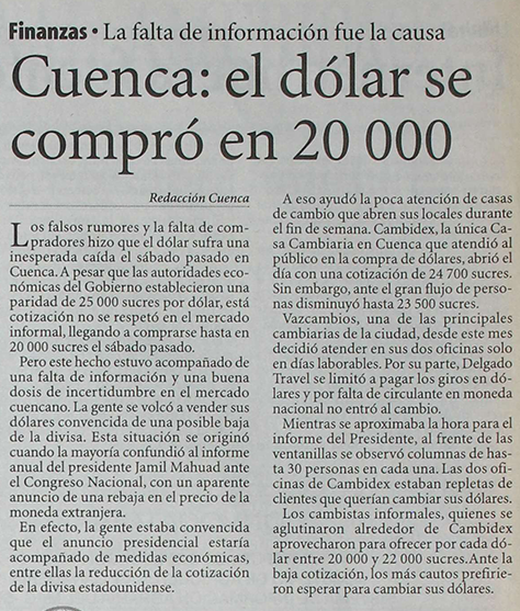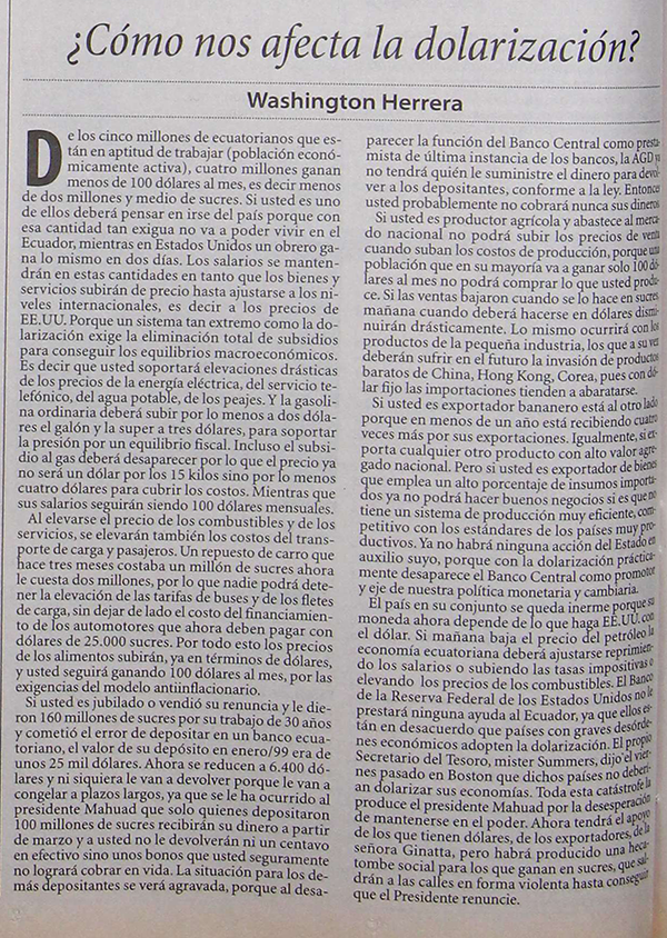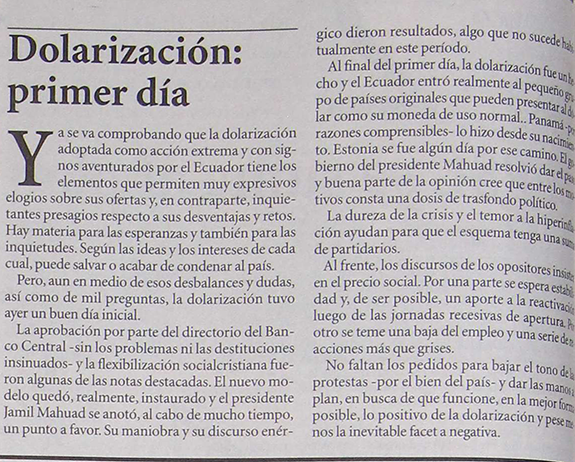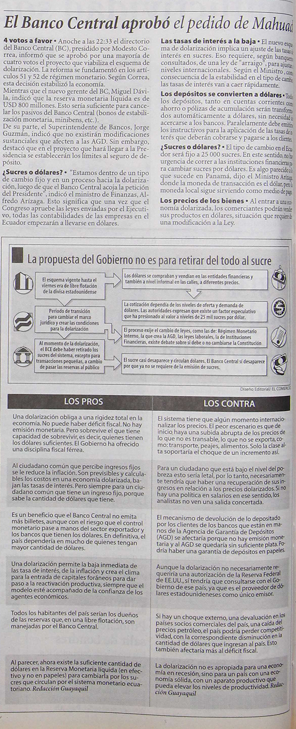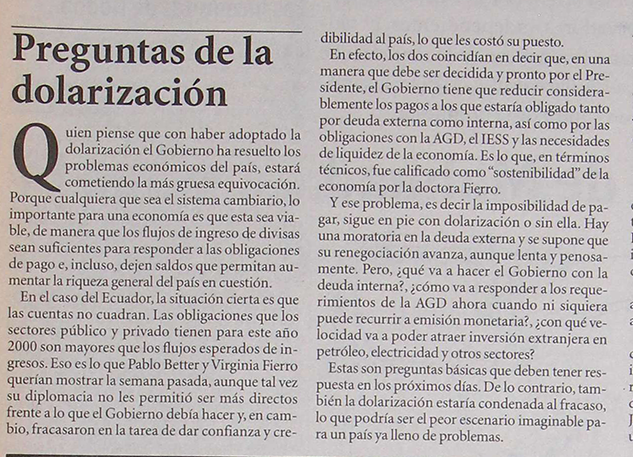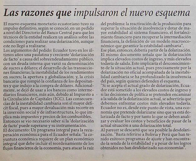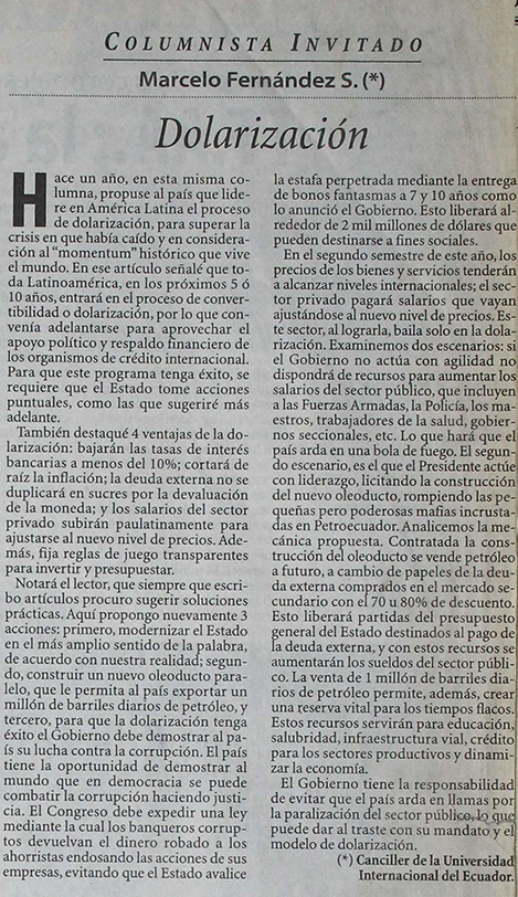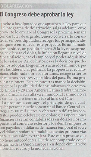 El Fondo Monetario respaldará a Ecuador en su dolarización