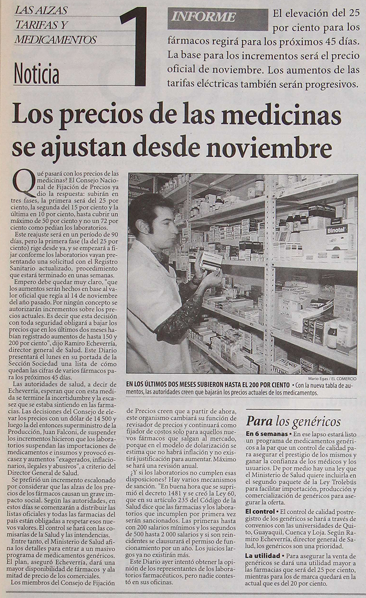 Los precios de las medicinas se ajustan desde noviembre