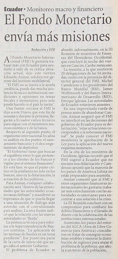 El Fondo Monetario envía más misiones
