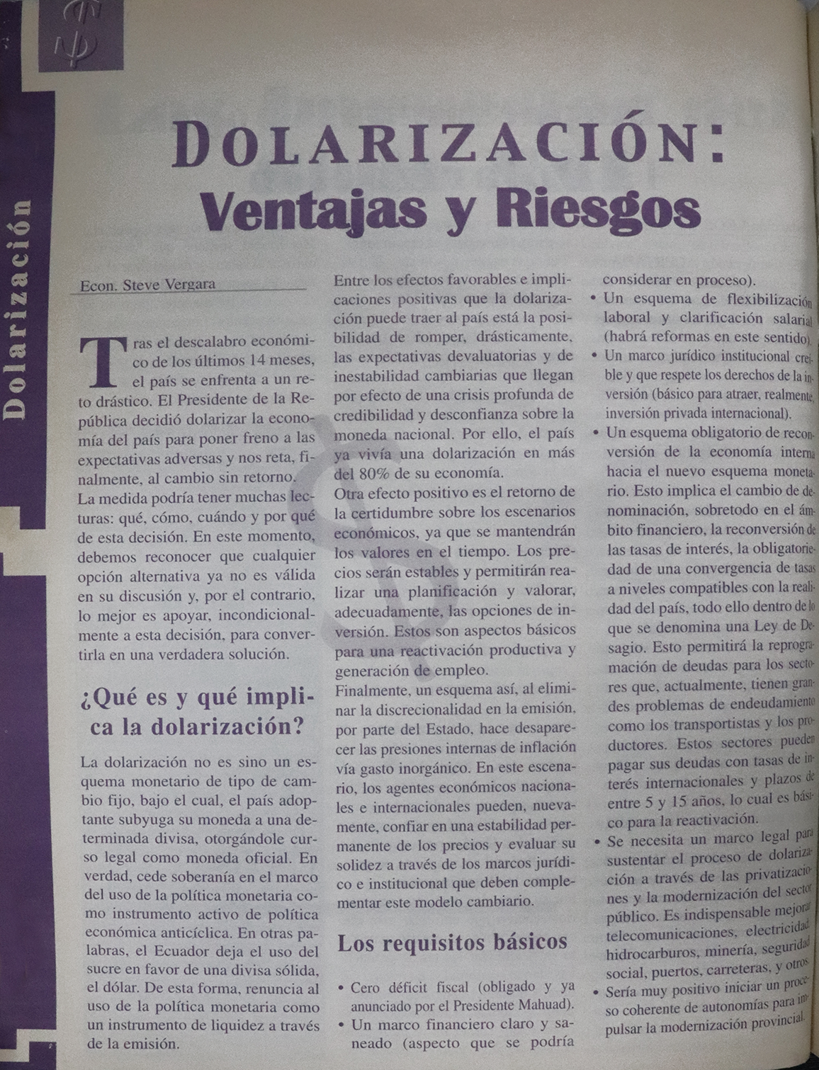 | Enero 2000 | La dolarización o el desastre | Nro. 1 | MACROECONOMÍA |