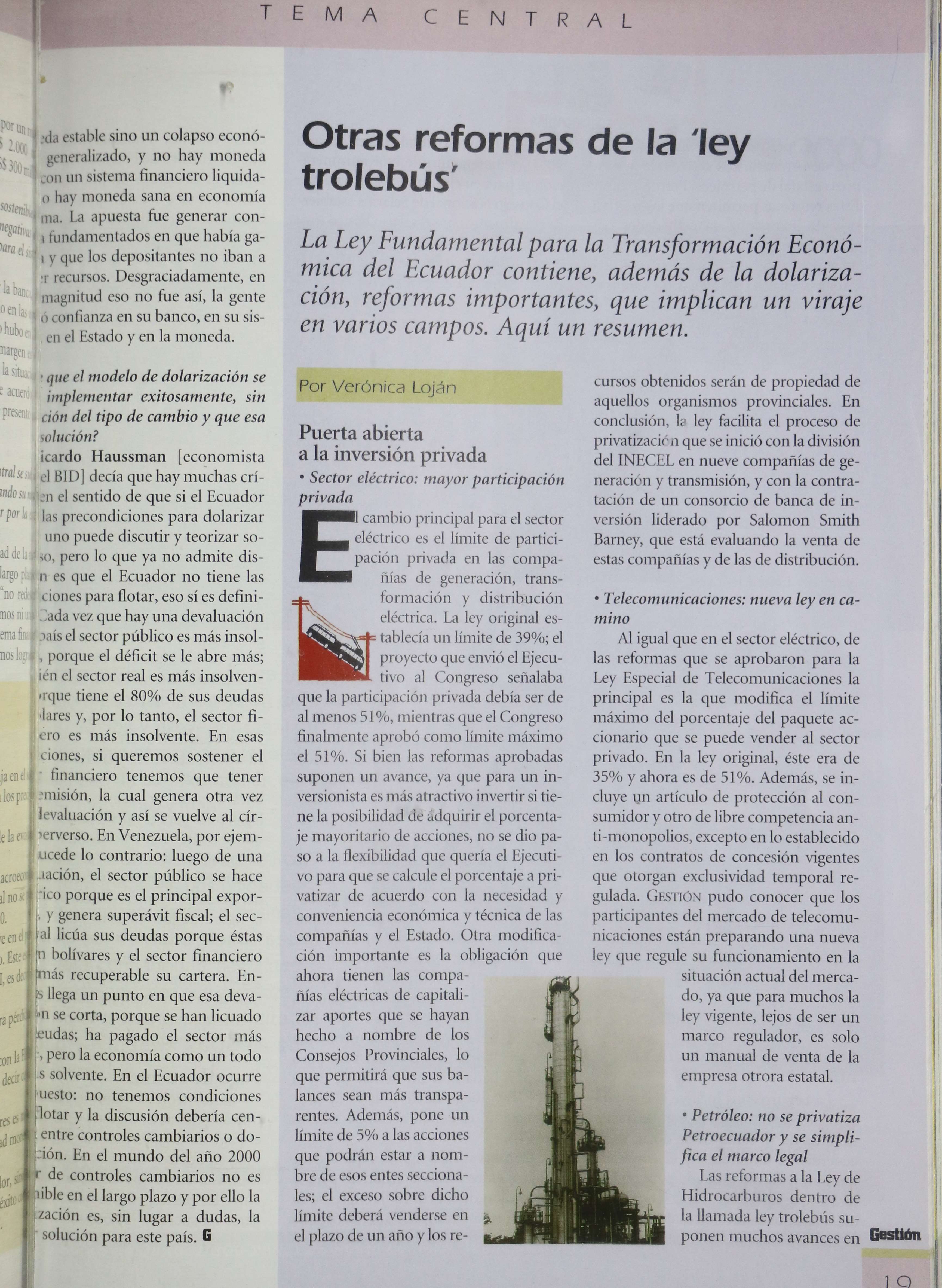 | Marzo-2000 | Otras reformas de la "Ley Trolebús" | Nro. 69 | 19-20/TEMA CENTRAL |