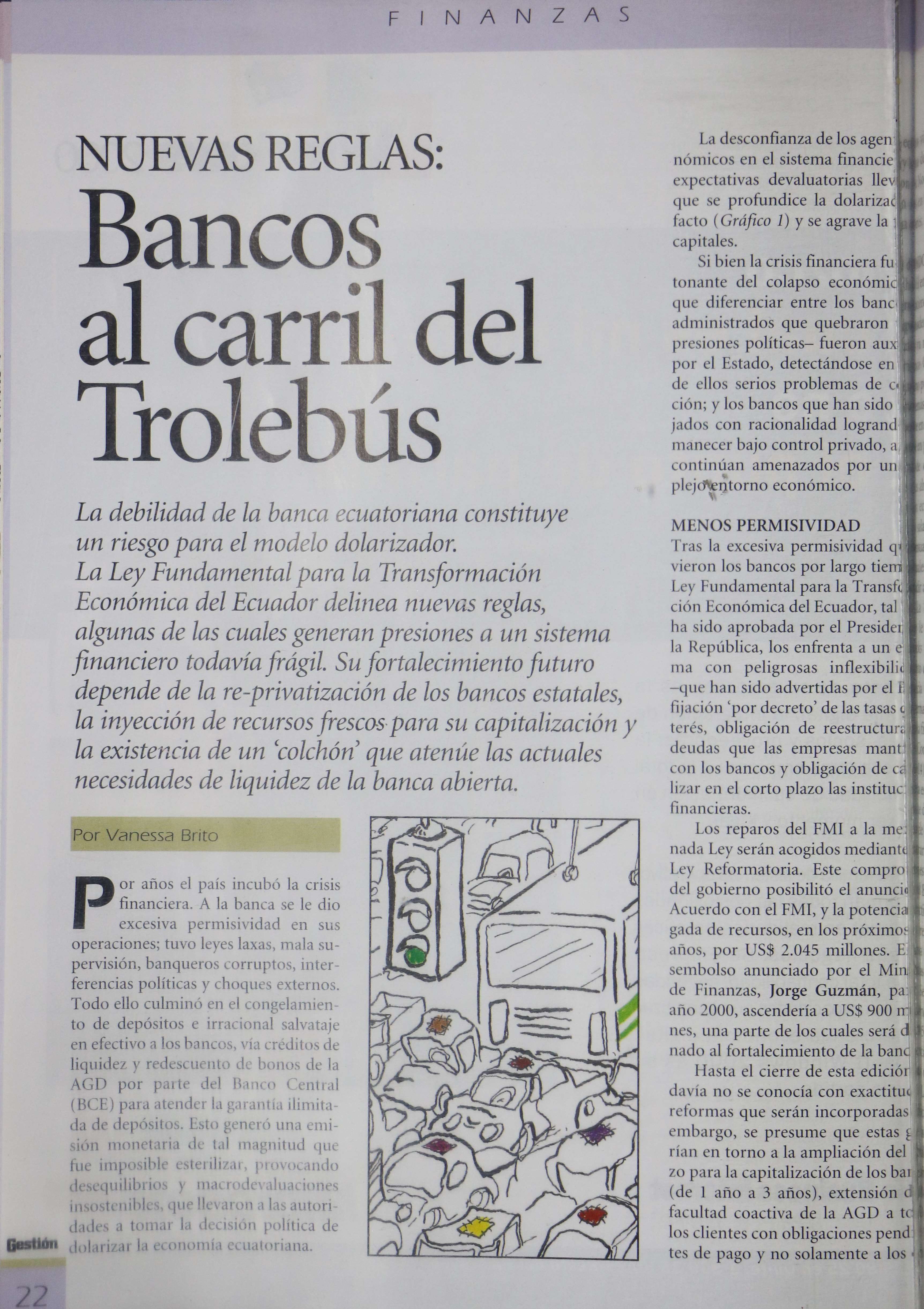 | Marzo-2000 | Nuevas reglas: bancos al carril del trolebús | Nro. 69 | 22-26/FINANZAS |