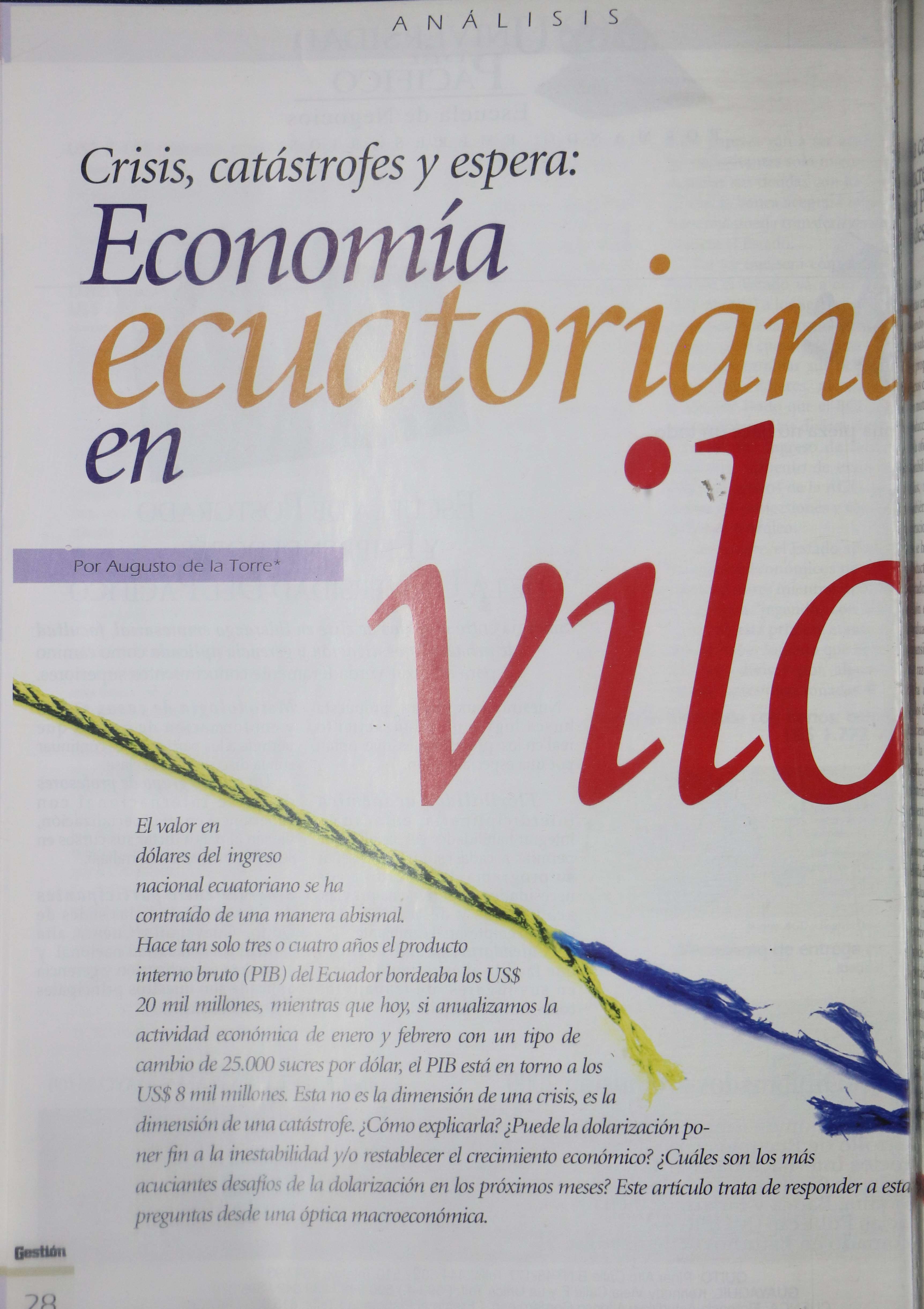 | Marzo-2000 | Crisis catástrofes y espera: Economía ecuatoriana en vilo | Nro. 69 | 28-33/ANÁLISIS |