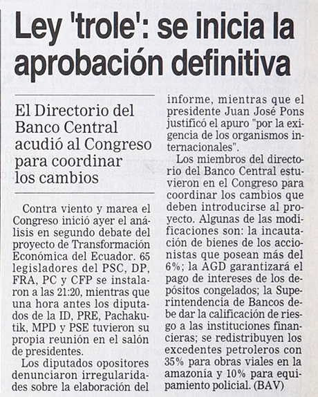 La ley Trole, en el Congreso: se endurece controles a los bancos