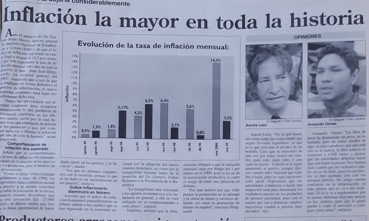 | Martes 1 de febrero del 2000 | Inflación la mayor en toda la historia | p.A3 |