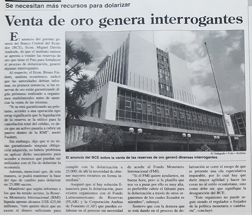 | Jueves 10 de febrero del 2000 | Venta de oro genera interrogantes | p. A2 |