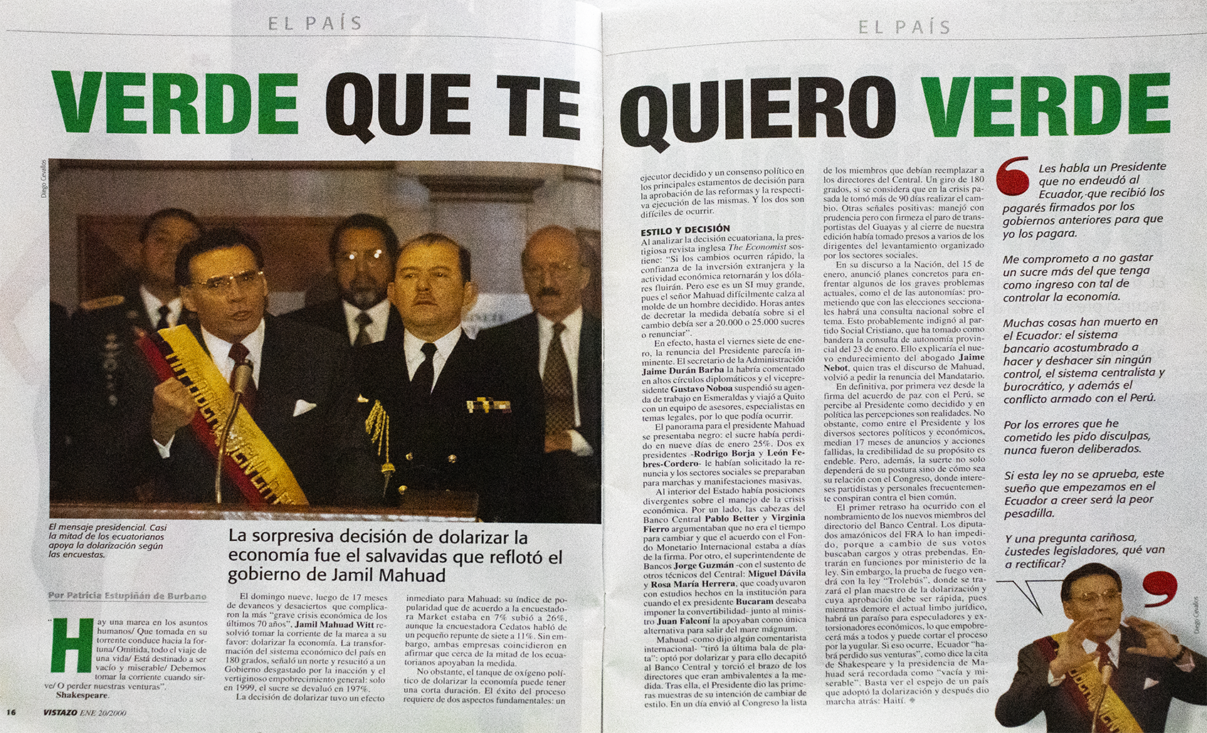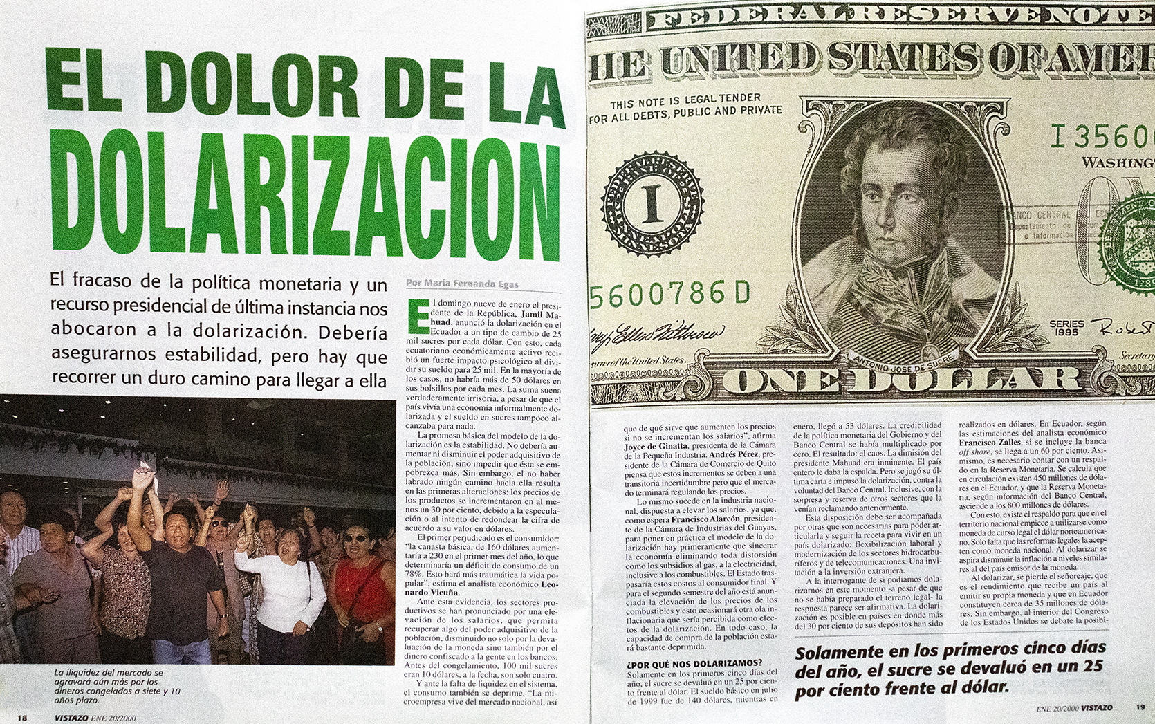| Enero 20/2000 | El dolor de la dolarización | No. 778 | 18 -21/EL PAÍS |